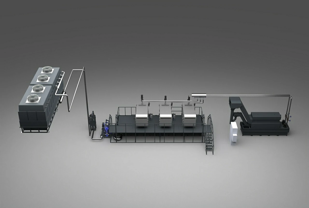Umlauf von Kühlmittelflüssigkeiten: Das System ist darauf ausgelegt, das Kühlmittel zurück zu den Verarbeitungsmaschinen zu zirkulieren. Das gereinigte und wiederverwendbare Kühlmittel wird zu den Verarbeitungsmaschinen zurückgeführt und schafft einen kontinuierlichen Kreislauf der Flüssigkeitsverwendung.