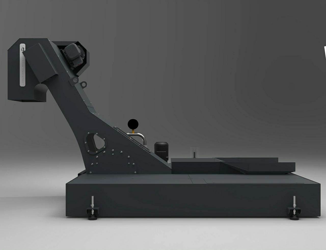 Hareketli olan kâğıt filtre üzerinde taşınan kesme sıvısından arındırılmış talaşlar, koruma sacı altında gizlenmiş güçlü motor sayesinde tahliye edilir.