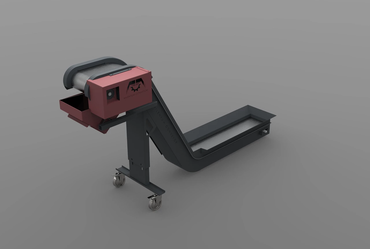 Los transportadores de tornillos y tuercas son utilizados para transportar tornillos, tuercas, arandelas y pernos que contienen aleaciones de hierro. Dado que no hay contacto entre el transportador magnético y el producto o las virutas, el riesgo de dañar el palet y el producto transportado es mínimo. Estos transportadores suelen ser los más costosos debido a los imanes de neodimio comúnmente utilizados en el sistema de paletas. El control del transportador suele lograrse conectándolo a la unidad de control de la máquina a través de un panel o un enchufe colocado en el cuerpo, lo que permite un control directo a través de la unidad de control de la máquina. Se pueden fabricar según el ángulo y las dimensiones deseadas para adaptarse a la capacidad de transporte de las virutas. Este tipo de transportadores generalmente no requieren procedimientos de mantenimiento frecuentes y complejos y son robustos y duraderos.